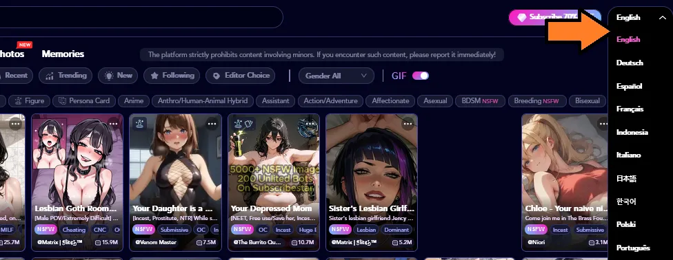 In the context of AI companions, "multilingual" describes platforms with more than one language. This means that, in addition to English, users can chat with AI characters in German, Spanish, French, and so forth.